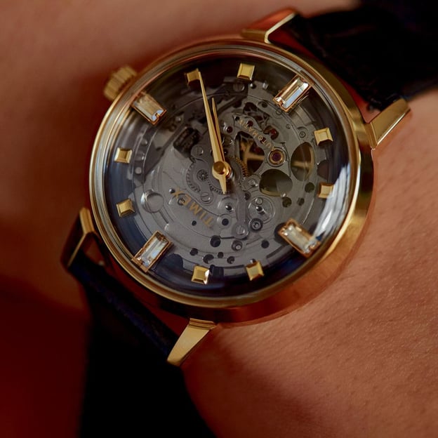 Жіночий годинник Timex UNVEIL Tx2v05100 - автоматичний годинник на чорному шкіряному ремінці зі сталевим корпусом золотистого кольору. Напівпрозорий циферблат та великі накладні мітки з кристалів мають ефектний вигляд. Механічний годинник з функцією автоматичного підзаведення, дозволяє назавжди забути про заміну батарейок. Солідний термін автономного ходу у стані спокою, при цьому підзаведення годинника відбувається під час коливальних рухів руки.