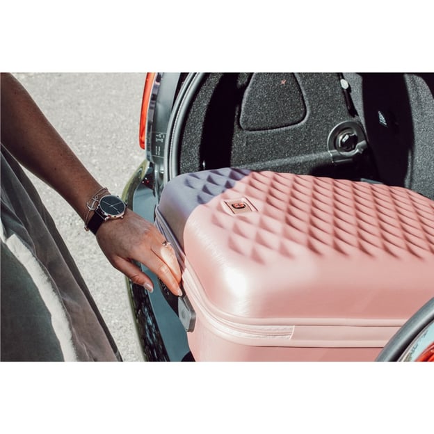 - Корпус 38 мм із неіржавної сталі з PVD-покриттям кольору рожеве золото.