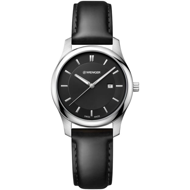 Жіночий годинник Wenger Watch CITY CLASSIC W01.1421.103 в елегантному дизайні на чорному шкіряному ремінці. Годинник уособлює повсякденну елегантність, поєднуючись з мінімалістичним дизайном.