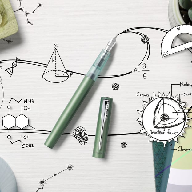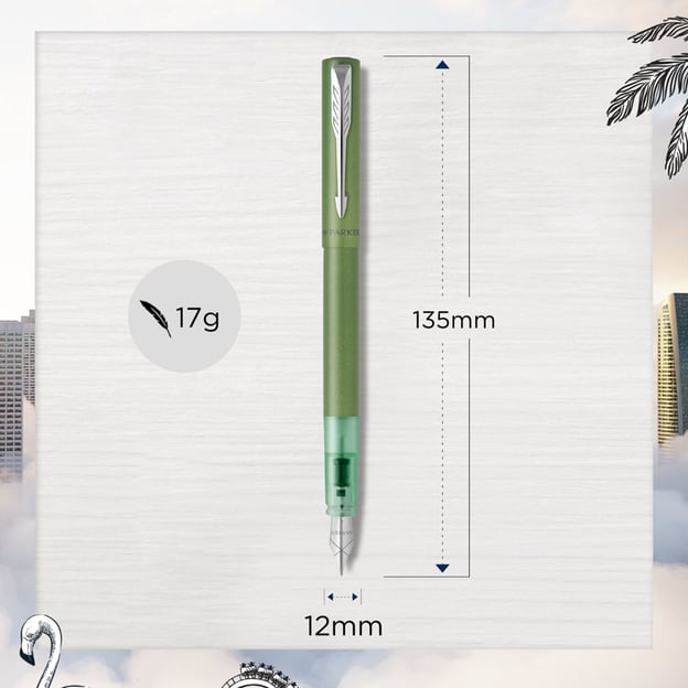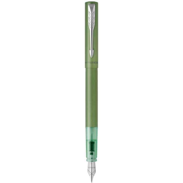 Parker VECTOR XL Metallic Green CT FP M - перьевая ручка в дизайне зеленый металлик со средним стальным пером и прозрачной грипп-секцией. Коллекция VECTOR XL предлагает полноразмерные ручки для художественного и писательского опыта. Безупречное сочетание стиля, качества и цены. Легкий металлический корпус дополнен инновационной для Parker зоной из прозрачного пластика. За узнаваемость модели отвечают хромированный зажим-стрела и название бренда на колпачке. А большое стальное перо позволит насладится каждой написанной линией. Дизайн выглядит очень современно и наверняка покорит сердца молодых и творческих людей.