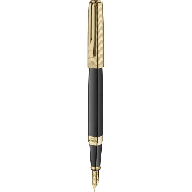 Изысканная французская перьевая ручка Waterman Exception Opera GT, сочетающая черный глянцевый лакированный корпус с позолоченным гравированным колпачком и золотым пером 18К. Ее дизайн вдохновлен величием парижской Гранд-оперы, воспроизводя вневременную элегантность и богатые декоративные традиции французских театров. Флагманская линейка Exception отличается уникальной формой корпуса и колпачка – мягкий квадрат в поперечном сечении, придающий современный геометрический стиль и престижность.