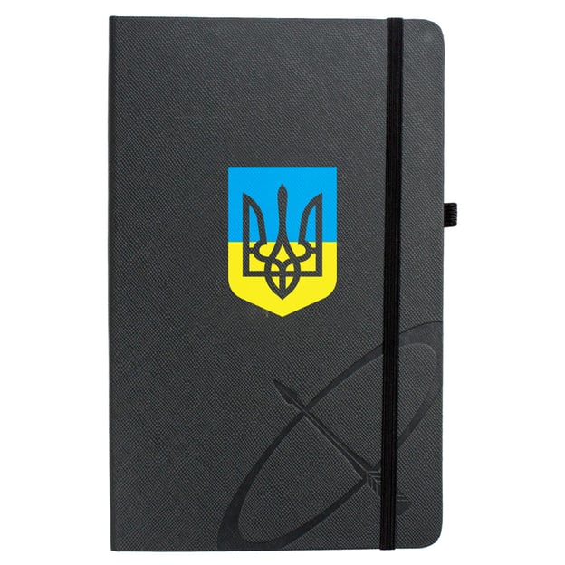 Серая твердая обложка с логотипом Parker и цветной печатью Герба Украины.