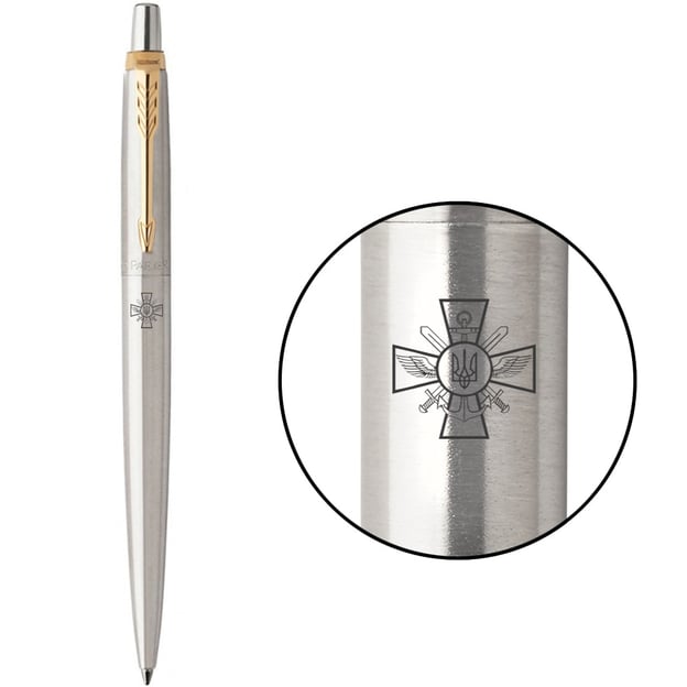 Ручка шариковая Parker JOTTER ARMY Stainless Steel GT с лазерной гравировкой Эмблема Генштаба ВСУ.