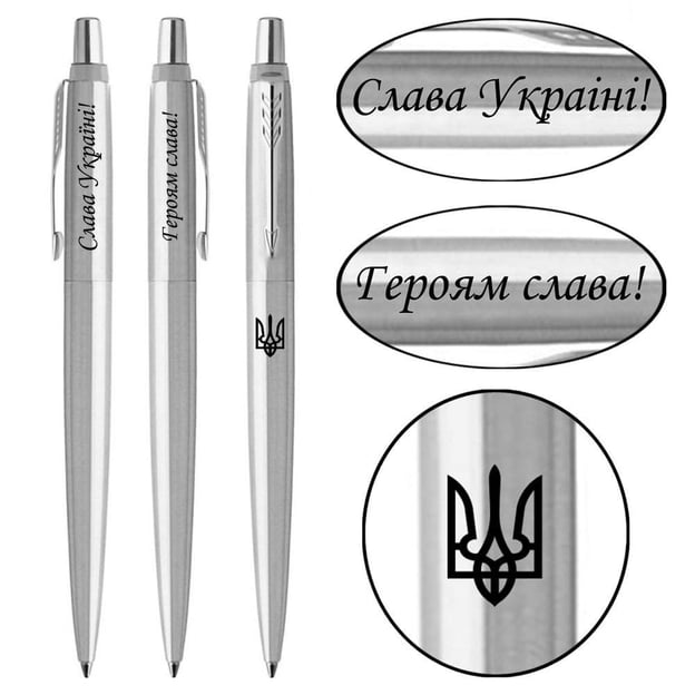 Ручка шариковая Parker JOTTER UKRAINE Stainless Steel CT с тройной лазерной гравировкой Трезубец + Слава Україні! + Героям Слава!