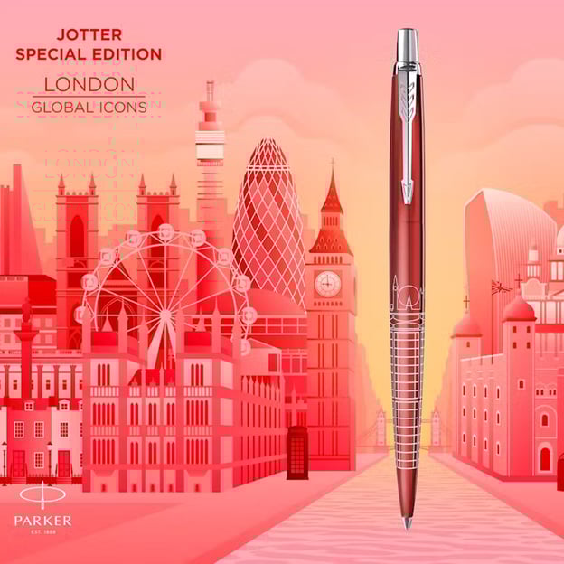 Parker JOTTER Special Edition 2025 - London Red CT - шариковая ручка из коллекции Jotter Global Icons, посвященная Лондону. Специальный выпуск, вдохновленный городами по всему миру. Данный квартет (Париж, Лондон, Сеул, Майями) стал вторым для Global Icons и готов пополнить вашу коллекцию уникальных пишущих инструментов с душой. В модели Parker 19 032_LON (2221603) источником вдохновения стали величественная красота и неповторимый городской пейзаж Лондона. Исторические силуэты его достопримечательностей и характерные квадратные узорчатые окна - все это передает стиль и очарование этого прекрасного старого города.