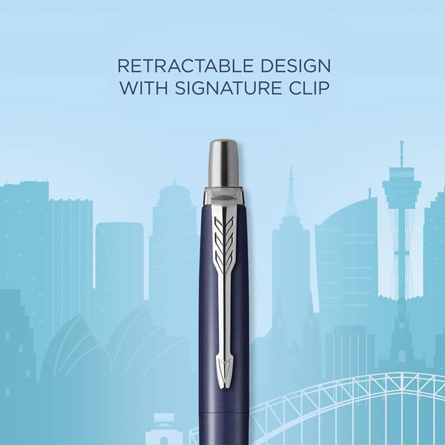 Ручка шариковая Parker JOTTER Sydney Blue CT (Special Edition) с темно-синим глянцевым лаком и лазерной гравировкой в нижней части корпуса.