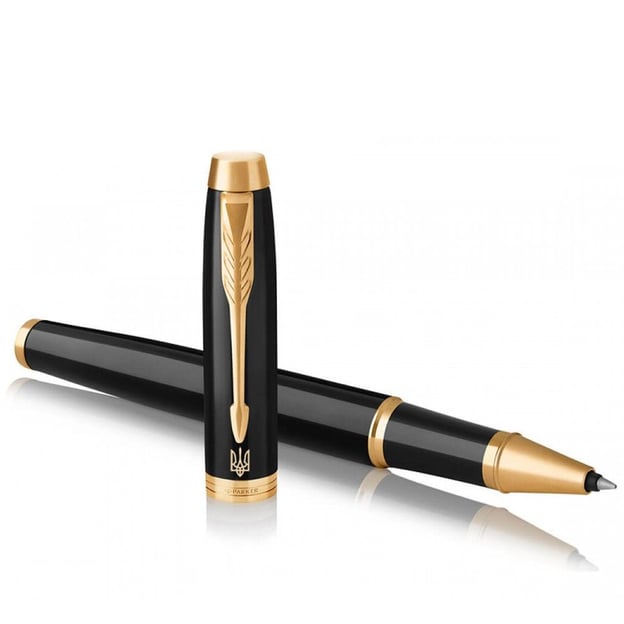 Роллерная ручка Parker IM UKRAINE Black GT с лазерной гравировкой Трезубец на колпачке.