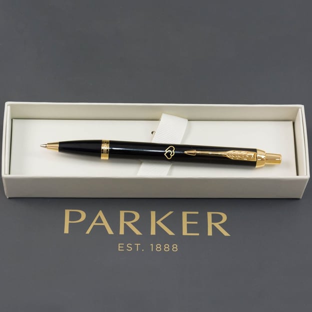 Шариковая ручка Parker IM LOVE Black GT с лазерной гравировкой Сердечки.