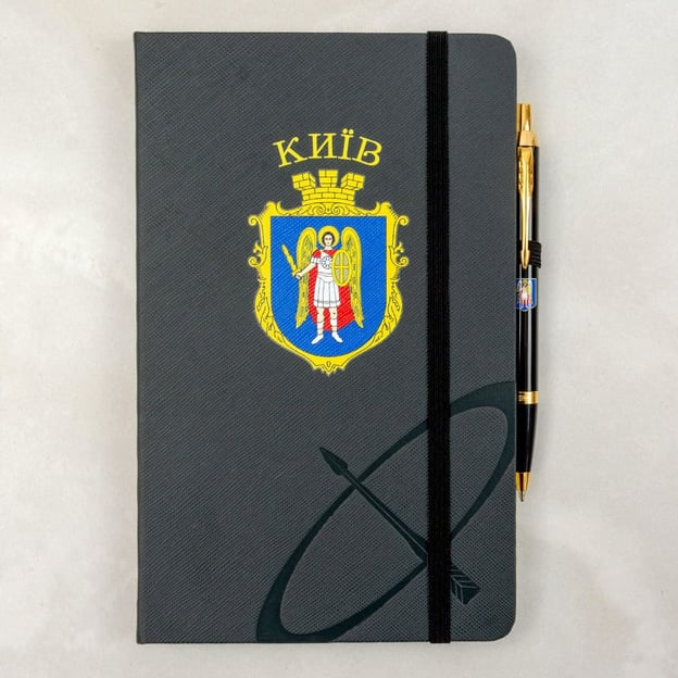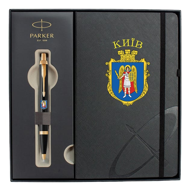 Набор: ручка шариковая Parker IM CITY Black GT BP Герб Киева + блокнот Parker + подарочная коробка