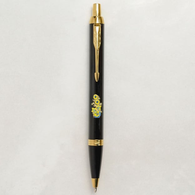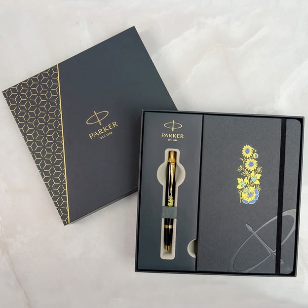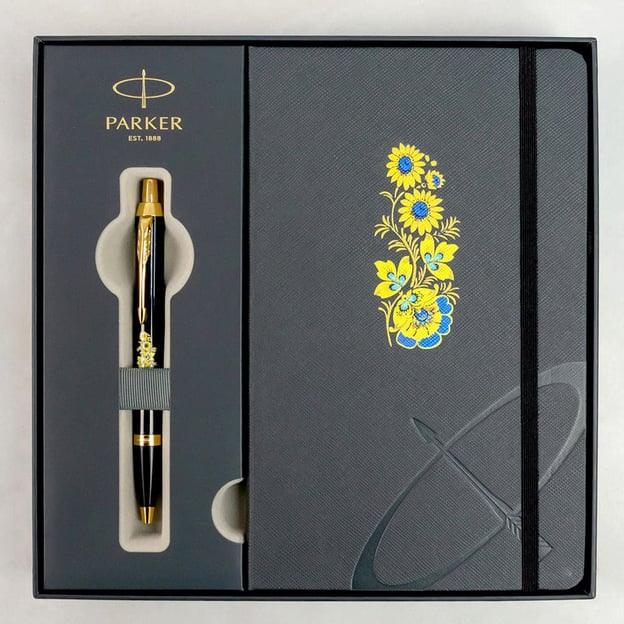 Набор: ручка шариковая Parker IM UKRAINE Black GT BP Цветы + блокнот Parker + подарочная коробка