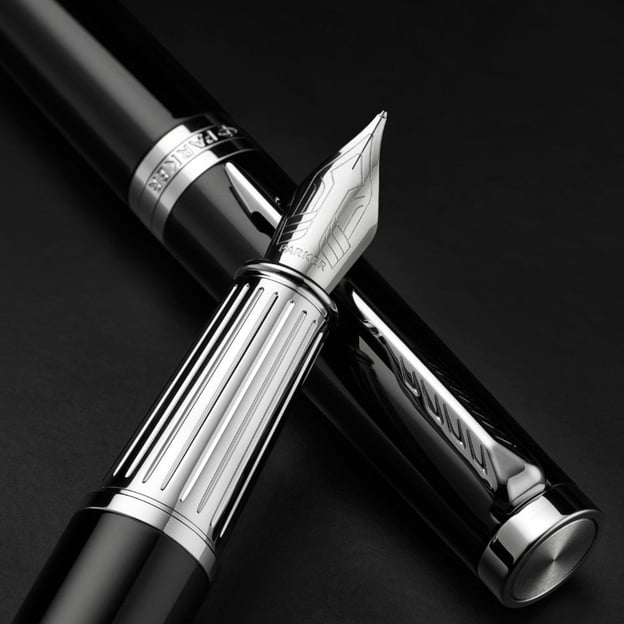 Перьевая ручка Parker INGENUITY Black Lacquer CT FP F представляет собой образец изысканности и утонченного стиля. Это отличный выбор для целеустремленных личностей, ценящих безупречное качество и продуманность в мелочах. Стильный аксессуар подходит как для женщин, так и для мужчин. Корпус из латуни украшен элегантным лаковым покрытием и хромированными деталями. Контраст глубокого черного глянца и текстурной рифленой гравировки на зоне захвата гармонично сочетается между собой. Фирменный зажим в виде стрелы и гравировка с названием бренда на кольце колпачка завершают безукоризненный образ ручки Parker. Инновационное перо Ingenuity разработано с оптимальным углом наклона, что делает его комфортным как для правшей, так и для левшей. Ручка совместима с картриджами для перьевых ручек или конвертером для заправки чернил из флакона (чернила и конвертер приобретаются отдельно).