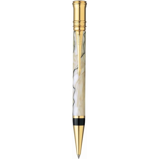 Parker DUOFOLD Pearl and Black GT BP – элегантная и статусная шариковая ручка имеет изысканный стиль и непревзойденное качество. Этот классический пишущий инструмент из знаменитой коллекции Duofold отличается гармоничным сочетанием перламутрового покрытия с мраморным узором и богатой отделкой из чистого золота. Корпус из драгоценной смолы придает ручке уникальный и солидный вид, который станет настоящим акцентом на вашем рабочем столе. Ручка оснащена поворотным механизмом для активации пишущего узла, а система Quinkflow® обеспечивает идеальный поток чернил, создавая ровные и насыщенные линии при каждом письме.