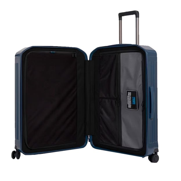 Piquadro PQ Light (PQL) Blue M Средний (46 x 69 x 27 см / 60 л / синий) - твердый средний чемодан из поликарбоната, который подойдет для любых путешествий. Самый популярный размер, легкий вес и высокое качество делают его идеальным для недельных поездок. Коллекция PQ Light представляет дорожные модели в самых разных цветах. Корпус из сверхпрочного поликарбоната, который выдерживает падения, удары и перепады температур. Ребристая поверхность противостоит появлению царапин. Внутреннее пространство имеет все необходимое для того, чтобы организовать упорядоченное размещение одежды и дорожных аксессуаров. Встроенный кодовый TSA-замок надежно защищает багаж от взлома. Легко маневрировать в узких проходах благодаря колесам, которые вращаются на 360 градусов.