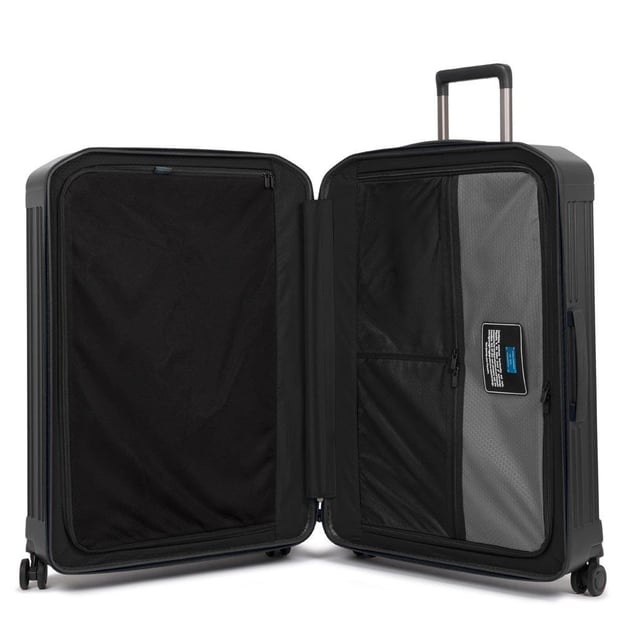 Piquadro PQ LIGHT/Matt Black Большой (51 x 75 x 28 см / 83 л / черный) - жесткий большой чемодан на 4-х колесах в черном матовом дизайне с кодовым TSA замком. Элегантная дорожная модель для длительных и семейных поездок.