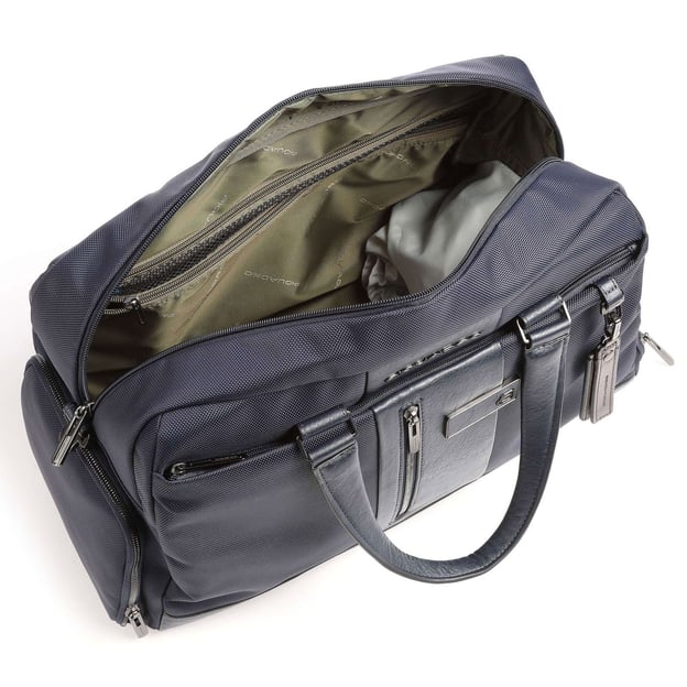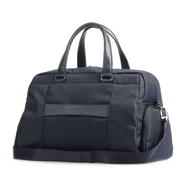 Piquadro Brief 2 (BR2) BV4447BR2_BLU (синяя) - стильная дорожная сумка для путешествий от итальянского бренда Piquadro. Сумка с одним основным отделением и дополнительными карманами для портативной электроники и ценных вещей. На передней части сумки расположены два кармана на молнии для аксессуаров, которые будут в быстром доступе во время поездки. Сбоку есть отделение для обуви. Для переноски сумки есть две кожаные ручки и плечевой ремень. Сумку можно прикрепить на телескопическую ручку чемодана. Идеальный вариант дорожной сумки, подходящий для отдыха и рабочих поездок.