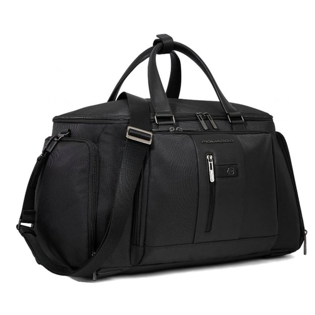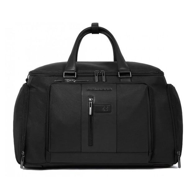 Piquadro Brief 2 (BR2) Black BV6305BR2_N (черная) - функциональная дорожная сумка-рюкзак. Эта дорожная сумка выходного дня от Piquadro не оставляет желать лучшего, крепкая, но простая нейлоновая ткань дополнена высококачественной кожаной отделкой. Функциональный интерьер состоит из многочисленных отделений, открытых карманов, молний, а также более специальных отделений, таких как: отделения для мобильных телефонов, отсек для электроники, отсек для ноутбука 15,6 дюймов и планшета, а также отделения для обуви, но это еще не всё. Скрытое отделение на молнии, внутри которого есть дополнительные лямки, а также в комплекте регулируемый по длине съемный плечевой ремень для дополнительного комфорта и сменных вариантов транспортировки. Кожаные детали в дизайне багажной модели придают ей неформальную деловитость.