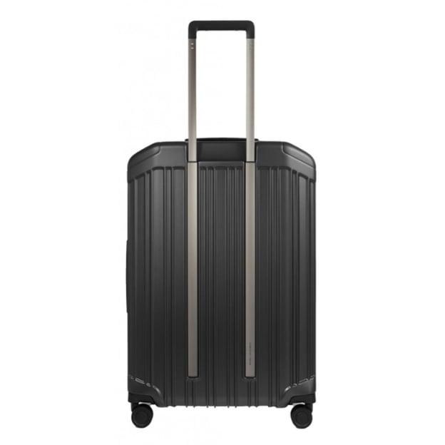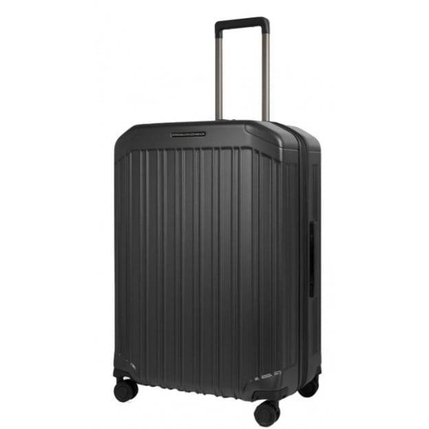 Piquadro PQ Light (PQL) Средний Matt Black (45 x 69 x 30 см / 82 л / черный) - изысканный итальянский чемодан среднего размера с функцией расширения объема и кодовым TSA замком. Параметры чемодана для поездок на 1-2 недели - все зависит от ваших привычек собирать вещи. Матовая ребристая поверхность в черном универсальном цвете выглядит элегантно и стильно. Корпус чемодана изготовлен из высокотехнологичного поликарбоната. Отличные эксплуатационные характеристики материала позволяют путешествовать с таким чемоданом в страны с разными погодными условиями. При необходимости внутреннее пространство легко расширить на 13 л. Для обеспечения безопасности и защиты от взлома в корпус интегрирован кодовый замок с функцией TSA. Плавное перемещение чемодана по любым поверхностям обеспечивает система из 4 двойных колес.