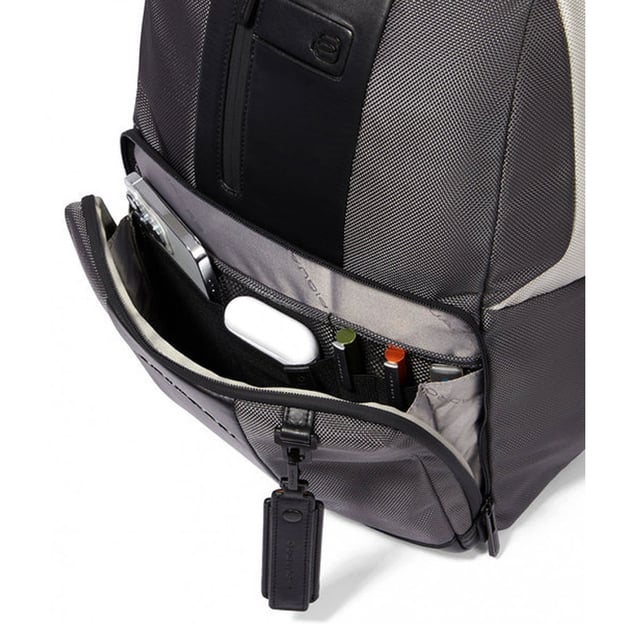 На внешней стороне рюкзака расположен вертикальный карман на молнии, а также отделение-органайзер с секциями для телефона, кошелька и ручек. Внутри главного отделения имеются мягкие карманы на застежке-липучке для хранения ноутбука до 14 дюймов и планшета iPad/iPad Mini, а также пару карманов на молнии.