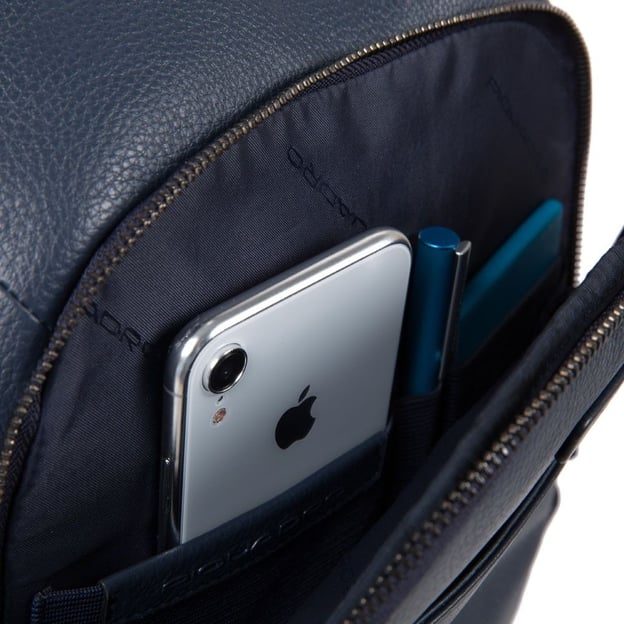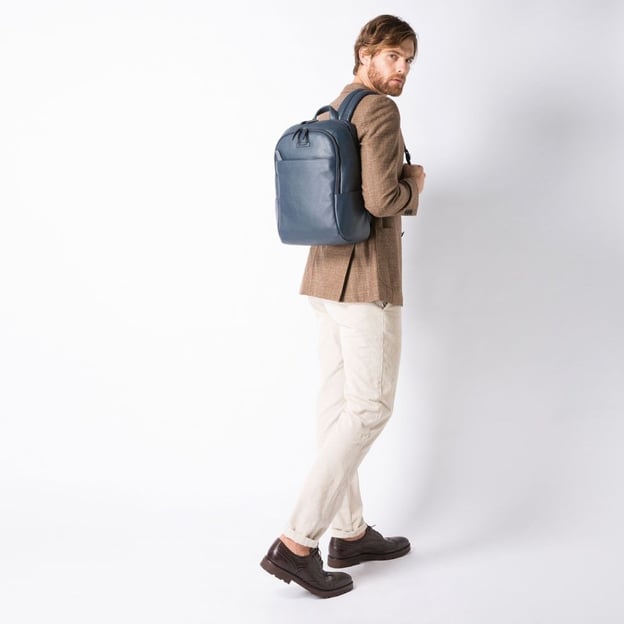 Piquadro MODUS RESTYLING (MOS) Blue CA3214MOS_BLU - кожаный рюкзак в синем цвете прекрасно подходит для деловых встреч, поездок и повседневного использования, обеспечивая надежное хранение и защиту ваших вещей. Регулируемые плечевые ремни позволяют настроить рюкзак под индивидуальные предпочтения, а дышащая спинка со специальной системой вентиляции помогает поддерживать комфортную температуру и обеспечивая комфорт при длительном ношении.