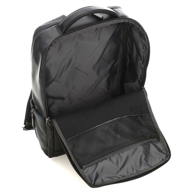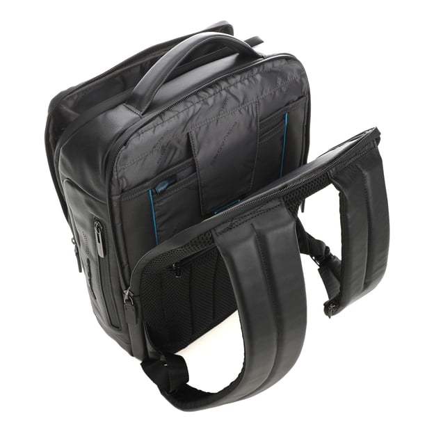 Piquadro URBAN Black CA4818UB00_N - кожаный рюкзак для ноутбука, стильный и функциональный аксессуар, идеально подходящий для современных деловых людей и активных городских жителей. Широкие ремни регулируются по длине, позволяя подстроить рюкзак под ваши параметры для максимального удобства. Система вентиляции на спинке рюкзака предотвращает перегрев и потливость, обеспечивая комфорт даже при длительном ношении.