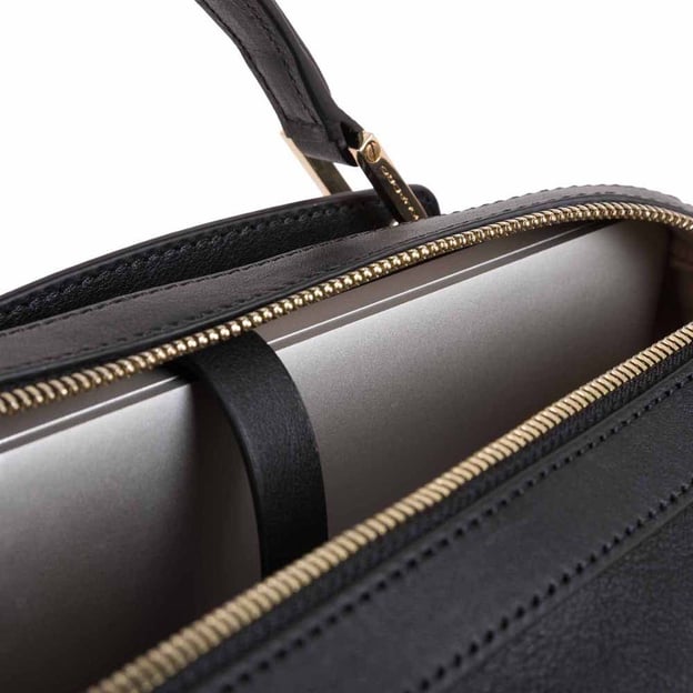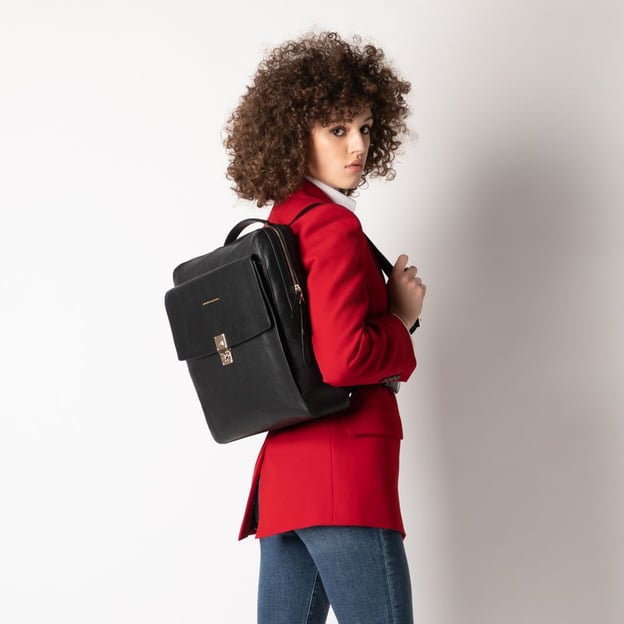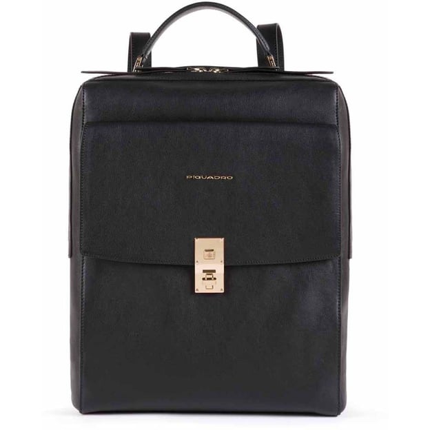 Piquadro DAFNE (DF) Black CA5277DF_N - женский рюкзак с отделением для ноутбука 14 '/iPad выполнен из натуральной кожи с выраженной зернистостью и золотистой фурнитурой. Стильный и функциональный дизайн сочетает современные тенденции и практичность, предоставляя деловым женщинам идеальное сочетание внешнего вида и удобства использования.
