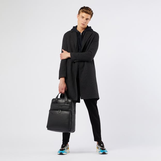 Данная модель разделена на два основных отделения. В первом находится органайзер с держателями для ручек, карманом для смартфона, небольшим отсеком для Connequ и другими отсеками для различных мелочей и аксессуаров. Второе отделение, открывающееся на 180 градусов, оборудовано противоударными карманами для ноутбука до 15,6 дюймов и iPad Air/Pro. С фронтальной стороны расположен компактный отсек с внутренними карманами. По бокам расположены верхние карманы с клапаном и нижние карманы на молнии. Также предусмотрен дополнительный верхний карман на молнии.