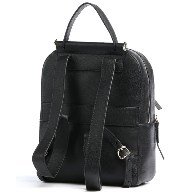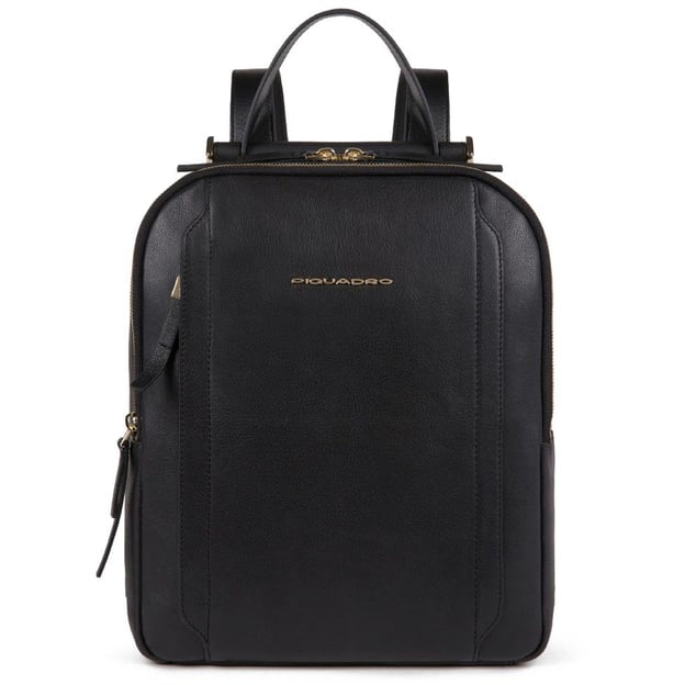 Piquadro CIRCLE (W92) Black CA5566W92_N - кожаный рюкзак для женщин, выполнен в классическом черном цвете, что делает его универсальным аксессуаром под любой стиль одежды и ситуации. Он изготовлен из высококачественных материалов, обеспечивая прочность и долговечность. Аккуратные плечевые лямки регулируются под вашу фигуру и предпочтения, обеспечивая оптимальный комфорт во время ношения, а удобная ручка-петелька дополняет функциональность рюкзака, позволяя удобно переносить его в руке при необходимости.
