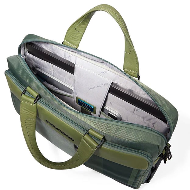 Piquadro STEVE (модель CA6017S131) - черная рабочая сумка для ноутбука 15,6″ на одно отделение. Для работы, учебы, эта модель в достаточно тонком дизайне станет вашим любимым ежедневным спутником. Лаконичный визуально, но изысканный в мелочах итальянский стиль. Коллекция Steve (S131) изготовлена из материала, полученного путем переработки, она экологичная и имеет высокое качество. Отделка натуральной кожей, которая многие годы является фирменной визитной карточкой бренда, подчеркивает в своем владельце человека со вкусом. Практичная функциональность для идеального порядка среди ваших рабочих вещей возложена на специальные безопасные карманы для портативной электроники, а также фиксированный органайзер, чтобы поиск нужного предмета не отнимал у вас много времени.