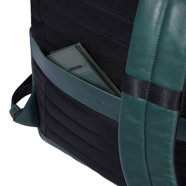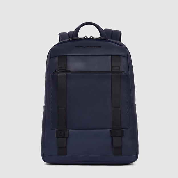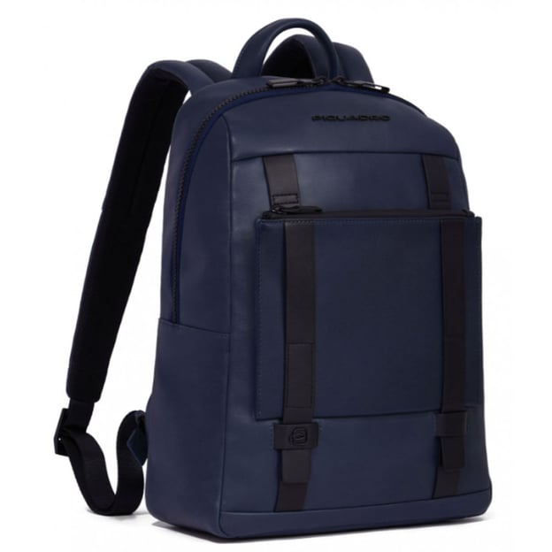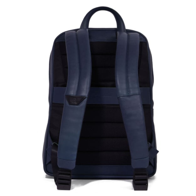 Piquadro DAVID (S130) Blue CA6362S130_BLU - рюкзак для ноутбука из натуральной кожи премиум класса с металлической фурнитурой антрацитового цвета. Идеальный выбор для офисных работников, студентов и тех, кто хочет всегда иметь под рукой документы, гаджеты и личные вещи. Длину плечевых ремней рюкзака можно регулировать под ваши параметры, также на них есть специальные петли, позволяющие прикреплять различные аксессуары. Мягкая спинка с вентиляционными каналами обеспечивает комфорт при длительном ношении, предотвращая перегрев спины.