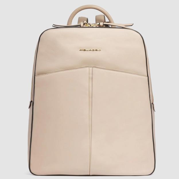Piquadro Ashley (W134) Pink (32x40,5x13,5 / 17л / розовый) - женский кожаный рюкзак в нежном розовом дизайне с карманами для ноутбука 15,6" и iPad Pro. Изысканный рюкзак для деловых и стильных женщин, которые ценят практичность и безупречный стиль. Это не только стильный аксессуар, но и практичный выбор для повседневного использования. Они сочетают в себе качество, функциональность и элегантный дизайн, что делает их популярными среди деловых людей. Вместительная модель на два отделения позволяет удобно разместить все необходимое: от портативных гаджетов и рабочих документов до личных вещей.