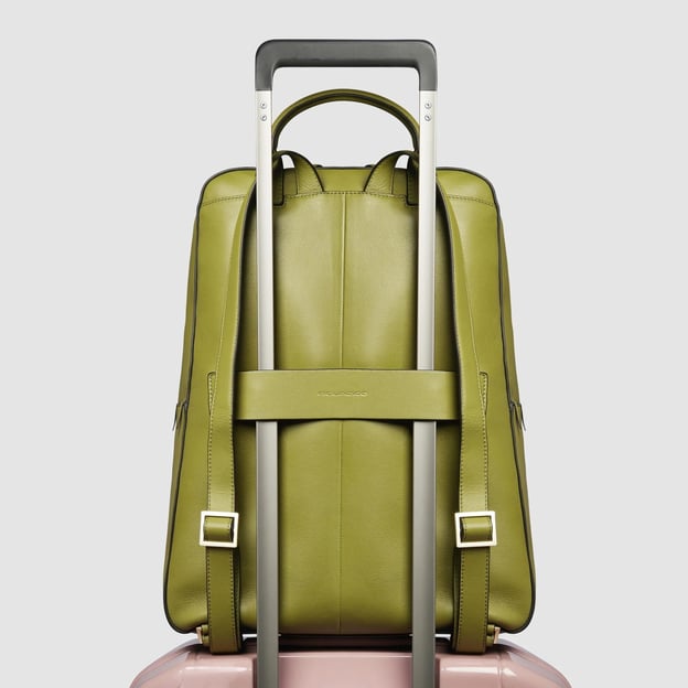 Piquadro Ashley (W134) Green (32x40,5x13,5 / 17л / зеленый) - стильный кожаный рюкзак с карманами для ноутбука 15,6" и iPad Pro. Изысканный рюкзак для деловых и стильных женщин, которые ценят практичность и безупречный стиль. Это не только стильный аксессуар, но и практичный выбор для повседневного использования. Они сочетают в себе качество, функциональность и элегантный дизайн, что делает их популярными среди деловых людей. Вместительная модель на два отделения позволяет удобно разместить все необходимое: от портативных гаджетов и рабочих документов до личных вещей.