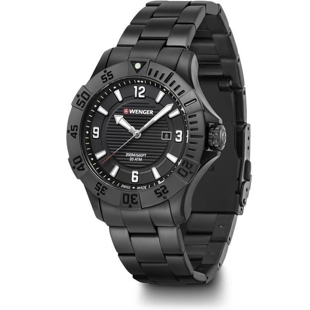 Водонепроницаемые мужские часы Wenger SEAFORCE W01.0641.135 в тотально черном стальном дизайне. Часы в спортивном стиле с элементами из мира дайвинга. Почувствуйте мощь стихии волн с часами, которые созданы, чтобы противостоять строгим силам природы.