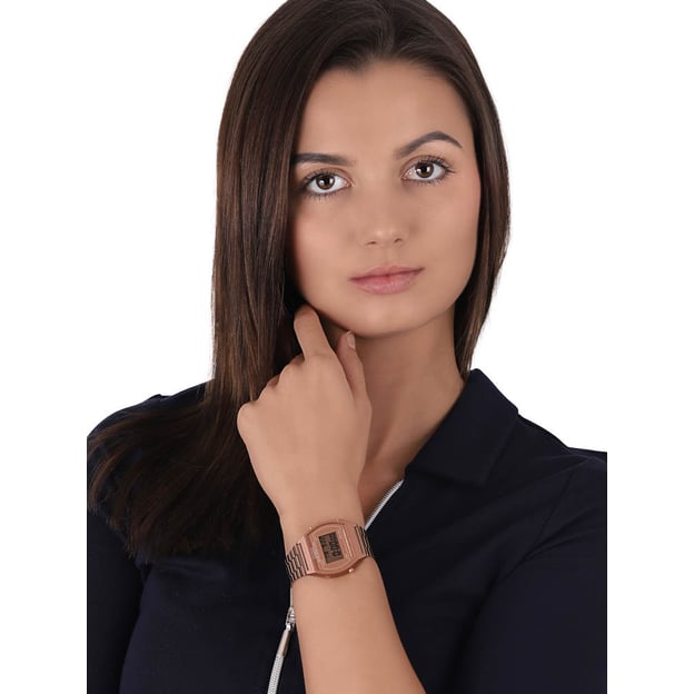 Casio VINTAGE EDGY B640WC-5AEF — женские электронные часы в оттенке розового золота. Овальный корпус из полимера легкий и удобный на руке, акриловое стекло хорошо подходит для повседневной носки. Браслет из нержавеющей стали подчеркивает общий аккуратный, «винтажный» характер модели.