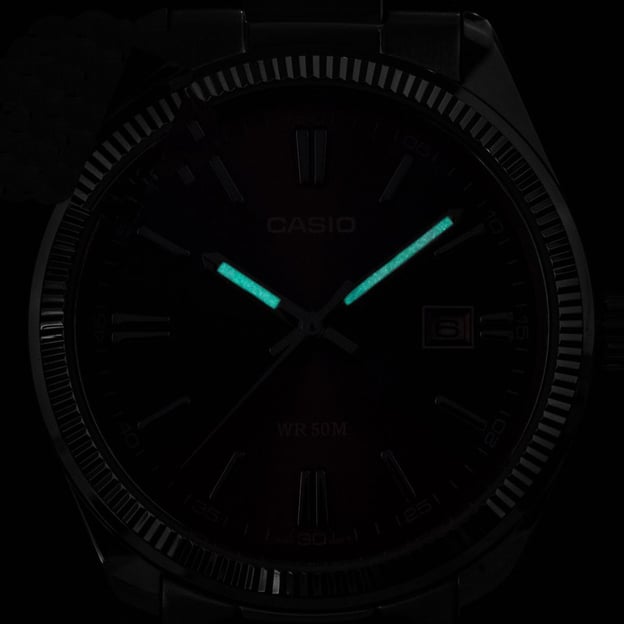 Серия Casio MTP 1302, несмотря на то, что заявлена как мужская, благодаря среднему размеру корпуса 38 мм и классическому стилю превосходно будет выглядеть и на женской руке. Нескучный дизайн с рифленым фиксированным безелем на корпусе, яркий трехстрелочный циферблат с серебристой полированной индикацией, дополненный минутной шкалой и датой. Идеальные часы на каждый день.