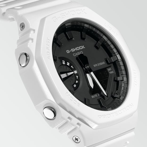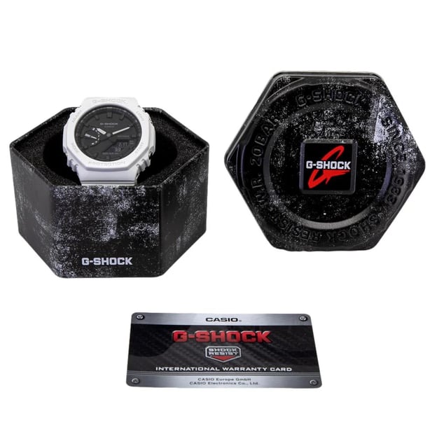 Мужские часы Casio GA-2100-7AER – культовый G-Shock в белом матовом дизайне с черным инверсионным циферблатом. Узнаваемый восьмиугольный плоский корпус содержит множество полезных функций, среди которых мировое время; будильник, цифровой секундомер и таймер. Часы водонепроницаемы – 200 м, поэтому им не страшны водные виды спорта. CASIO GA 2100 – любимые часы поклонников экстремальной прочности G-Shock от японского бренда Casio. Благодаря корпусу Carbon Core Guard, часы более устойчивы к ударам, чем обычные часы, а их «внутренности» помещаются в корпус толщиной всего 11,8 мм. GA-2100 – самый тонкий G-Shock за всю историю и максимально комфортный для повседневной носки. Упакованы в оригинальную упаковку производителя в виде металлической банки.