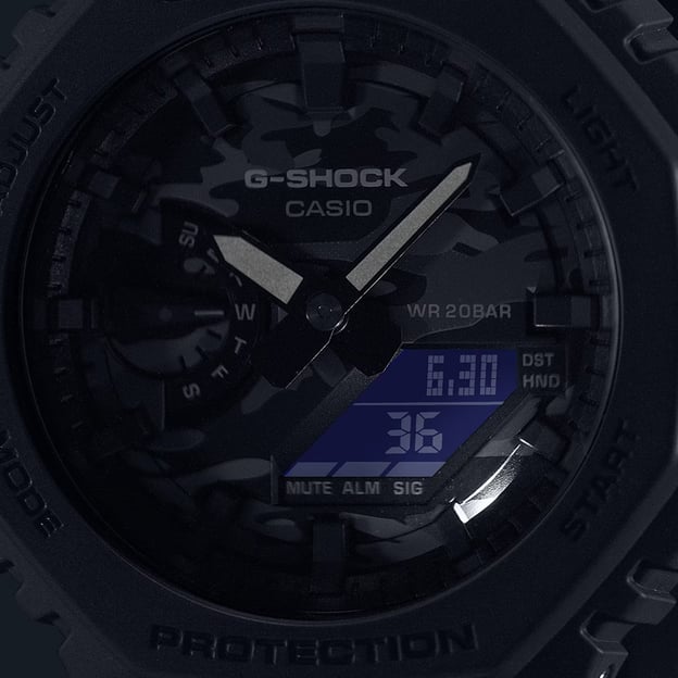Мужские часы Casio GA-2100CA-8AER – популярный во всем мире водо- и ударостойкий G-SHOCK в матовом дизайне графитового цвета с камуфляжным инверсивным циферблатом. Коллекция спортивных часов Casio GA 2100 создана для поклонников экстремальной прочности G-Shock и культовой точности от японского бренда Casio. Водозащита 200 м, секундомер, таймер, будильник, подсветка и множество других полезных «плюшек» – с этими многофункциональными часами вы готовы к любым задачам. Благодаря корпусу Carbon Core Guard, часы не только прочные, но и легкие, а их «внутренности» помещаются в корпус толщиной всего 11,8 мм, поэтому GA-2100 – самый тонкий G-Shock за всю историю и максимально комфортный для повседневной носки. Все модели серии G-Shock более устойчивы к ударам, чем обычные часы.
