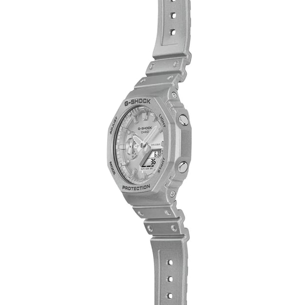 Мужские часы Casio GA-2100FF-8AER – это популярный во всем мире водонепроницаемый и ударопрочный G-SHOCK в корпусе Carbon Core Guard и футуристическом дизайне с серебристым металлическим блеском. Модель Casio GA 2100 – часы для поклонников экстремальной прочности G-Shock. В отличие от последних карбоновых моделей, выполнены в более тонком и изысканном корпусе толщиной 11,8 мм — это самые тонкие часы G-Shock за всю историю!
