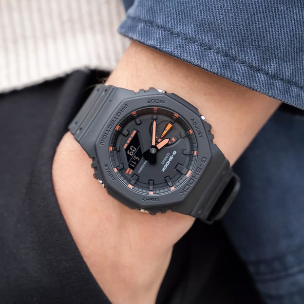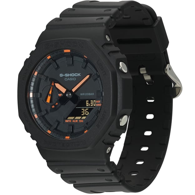 Мужские многозадачные часы Casio GA-2100-1A4ER – водонепроницаемый и ударопрочный G-SHOCK в корпусе Carbon Core Guard из линейки Neon Accent с неоновыми стрелками и индексами, которые круто дополняют черный матовый дизайн. Серия Casio GA 2100 – часы для поклонников экстремальной прочности G-Shock, поэтому пользуются особой популярностью среди спортсменов. Водонепроницаемость 200 м, секундомер, таймер – с этими часами можно смело заниматься любым видом спорта. В отличие от последних карбоновых моделей, выполнены в более тонком и изысканном корпусе толщиной 11,8 мм — это самые тонкие часы G-Shock за всю историю!