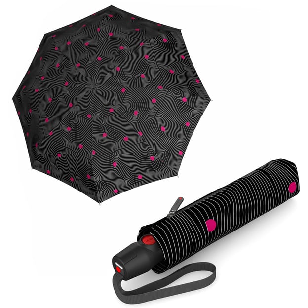 Knirps T.200 Medium Duomatic Ecorepel (Meditate Black/черный в волнообразные полоски и яркие точки) - качественный зонт-автомат с яркими акцентами от Knirps. Модель легко открывать и складывать всего одной рукой благодаря автоматическому механизму, нажав на большую красную кнопку. Купол с экологичным защитным покрытием Ecorepel, который достойно проявляет себя в разных условиях эксплуатации. Конструкция складывается из положения вывернутого наизнанку купола. Зонты серии T.200 прошли испытания в аэродинамической трубе на скорости до 150 км/ч. Высококачественное сочетание материалов алюминия, стали и стекловолокна гарантирует длительный срок службы.