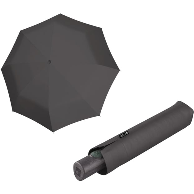 Knirps Vision Duomatic (Dust/темно-серый) - экологичный зонт-автомат в темно-сером цвете от Knirps. Дизайн сочетает в себе экологически чистые материалы и первоклассное качество изготовления с комфортной эксплуатацией. Большая зеленая кнопка Duomatic на ручке зонта гарантирует удобство и легкое открытие. Для ручки использован полностью биоразлагаемый пластик от Trifilon, позволяющий избежать загрязнения океанов вредными частицами микропластика. Купол изготовлен из переработанного ПЭТ и покрыт водо- и грязеотталкивающим покрытием ecorepel. Конструкция выдерживает скорость ветра до 120 км/ч, по этому идеально подходит для штормовых дней. При покупке Knirps Vision вы получаете экологически чистый продукт, который будет радовать вас на протяжении многих лет.
