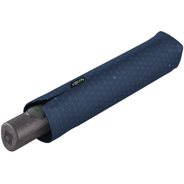 Knirps Vision Duomatic (Air Blue/темно-синий с принтом) - экологичный зонт-автомат с принтованным куполом от бренда Knirps. Дизайн сочетает в себе экологически чистые материалы и первоклассное качество изготовления с комфортной эксплуатацией. Большая зеленая кнопка Duomatic на ручке зонта гарантирует удобство и легкое открытие. Для ручки использован полностью биоразлагаемый пластик от Trifilon, позволяющий избежать загрязнения океанов вредными частицами микропластика. Купол изготовлен из переработанного ПЭТ и покрыт водо- и грязеотталкивающим покрытием ecorepel. Конструкция выдерживает скорость ветра до 120 км/ч, по этому идеально подходит для штормовых дней. При покупке Knirps Vision вы получаете экологически чистый продукт, который будет радовать вас на протяжении многих лет.