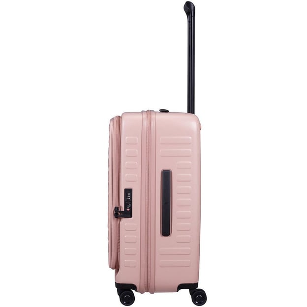 Lojel Cubo V4 M Rose (45x65x30 см / 70 л / светло-розовый) - женский чемодан среднего размера в нежном розовом дизайне со вставкой расширения и кодовым замком TSA. Универсальный вариант как для недельных поездок, так и для более длительных - зависит от вашей потребности в количестве вещей.