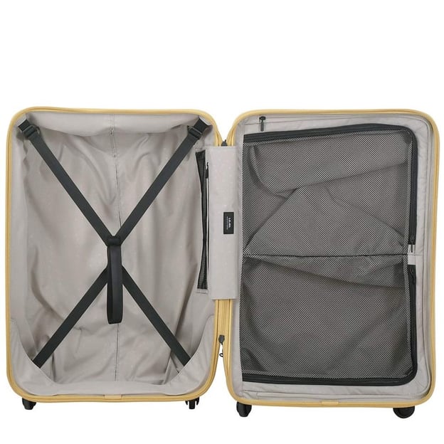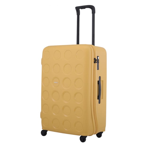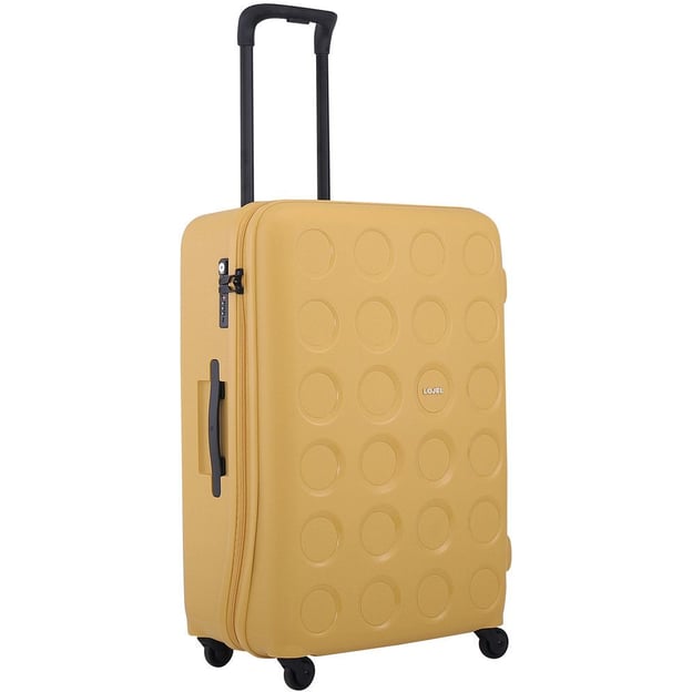 Lojel VITA 18/Yellow Ochre Средний (49 x 70,4 x 29,3 см / 75 л / желтый) - яркий чемодан среднего размера со встроенным кодовым замком TSA от бренда Lojel. Самый популярный размер благодаря универсальной емкости. Параметры чемодана для поездок на 1-2 недели - все зависит от ваших привычек собирать вещи. Узнаваемый дизайн коллекции Vita с объемным круговым рисунком на лицевой панели и фигурной молнией. Чемодан изготовлен из ударопрочного пластика - полипропилена, который устойчив к низким и высоким температурам. Для дополнительной безопасности и таможенных досмотров в корпус чемодана встроен кодовый замок блокировки TSA. Четыре колеса, вращающиеся на 360 градусов, обеспечивают маневренность и устойчивое положение при транспортировке. Эргономичная телескопическая ручка с регулируемой высотой, которая имеет фиксацию в нескольких положениях.