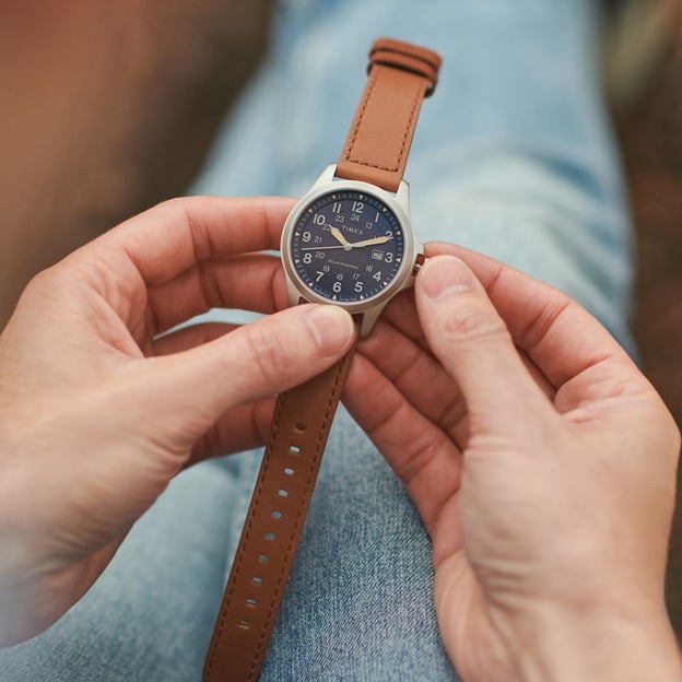 Корпус из нержавеющей стали защищен сапфировым стеклом, а водозащита 10 ATM (100 м) позволяет не переживать из-за воды в обычных ситуациях. Кварцевый механизм с солнечной батареей избавляет от частой замены элемента питания. Завершает образ коричневый кожаный ремешок; диаметр корпуса 41 мм выглядит гармонично на большинстве запястий.
