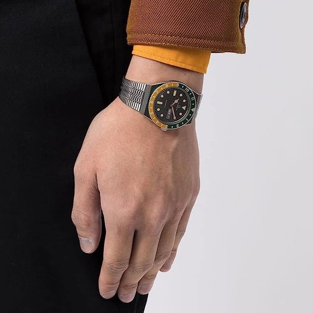 На циферблате предусмотрены дата и день недели, чтобы нужная информация всегда была под рукой. Люминесцентные стрелки и метки помогают ориентироваться при слабом освещении. Водозащита 5 ATM (50 м) добавляет спокойствия в обычных ситуациях при контакте с водой, а стальной браслет поддерживает общий сдержанный, собранный вид.
