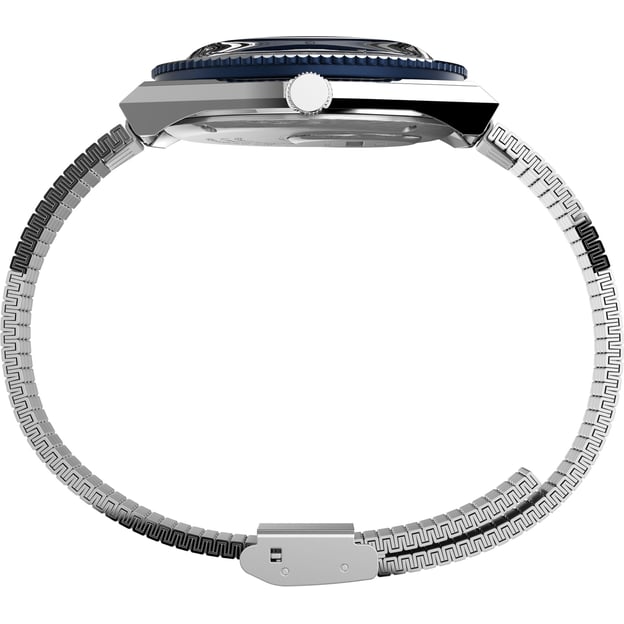 Мужские кварцевые часы Timex Q DIVER Tx2u61900 – современная стальная модель в серебристом цвете с вращающимся синим безелем. Оригинальная модель Q Timex стала новым поколением современных часов с кварцевой технологией. Функциональные часы с двойной апертурой: дата и день недели, синим вращающимся безелем, плетеным браслетом из нержавеющей стали и куполообразным акриловым стеклом в винтажном стиле. Линейка Q DIVER от дайверских часов взяла традиционный безель, вращающийся в одну сторону. Хотя в этих часах вы не отправитесь исследовать глубины, зато они защищены от воды во время спокойного времяпрепроводжения у водойомов.