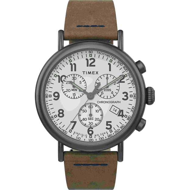 Хронограф с белым циферблатом Timex STANDARD — модель с шиком и большой универсальностью.