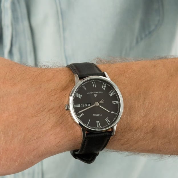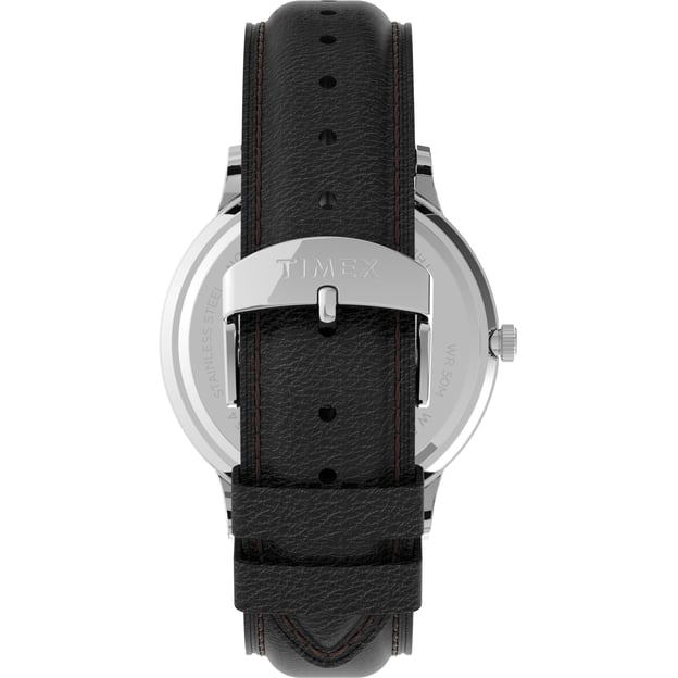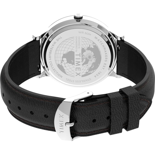 Timex Waterbury TW2U88600 — классическая модель для тех, кто ценит понятный дизайн и аккуратные детали. Черный циферблат хорошо читается, а стрелки и метки с люминесцентным покрытием помогают ориентироваться при слабом освещении. Корпус из нержавеющей стали в серебристом цвете и круглая форма диаметром 40 мм выглядят сдержанно и универсально.