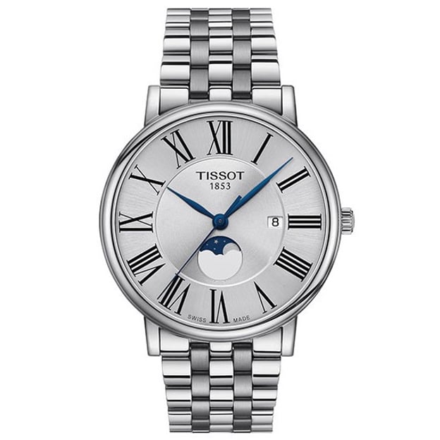 Часы Tissot Carson Premium Moonphase T122.423.11.033.00 впечатляют своим утонченным стилем и архитектурой циферблата с римскими цифрами и тонкими индексами.