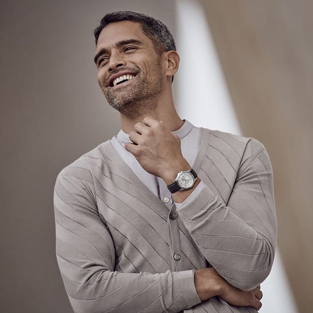 Сапфировое стекло с антибликовым покрытием помогает легко и четко считывать время даже при ярком освещении или под разными углами, а водозащита 10 ATM / 100 м добавляет уверенности в обычных ситуациях, где часы могут намокнуть. Внутри — кварцевый механизм, есть дата и люминесцентные стрелки и метки для считывания времени в темноте. Черный кожаный ремешок подчеркивает строгий, сдержанный стиль.